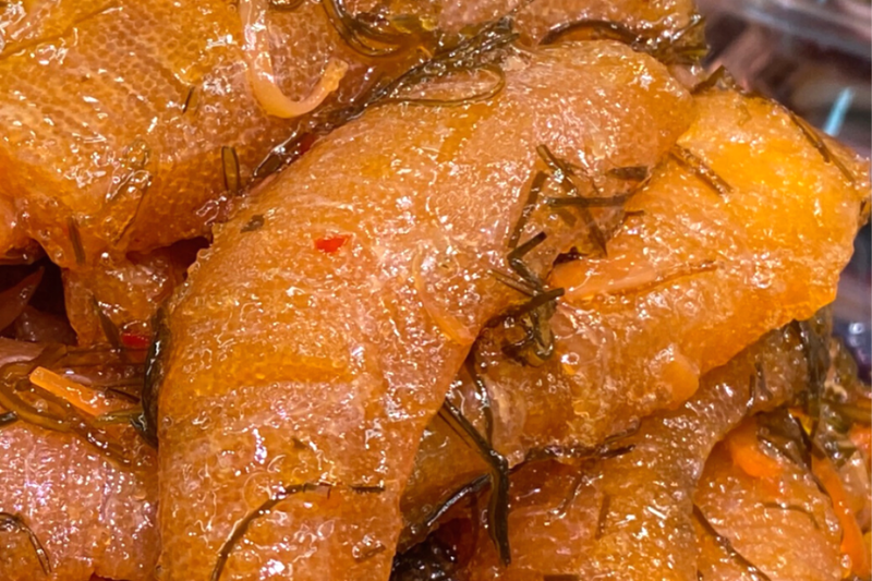 北海道小樽はニシンの街と言われています。その小樽で創業70余年の老舗海産物問屋が作った自家製の本数の子松前漬けは、大ぶりの本チャン数の子たっぷりでクセになる甘味と歯応えで当店の大人気ベストセラー商品です。